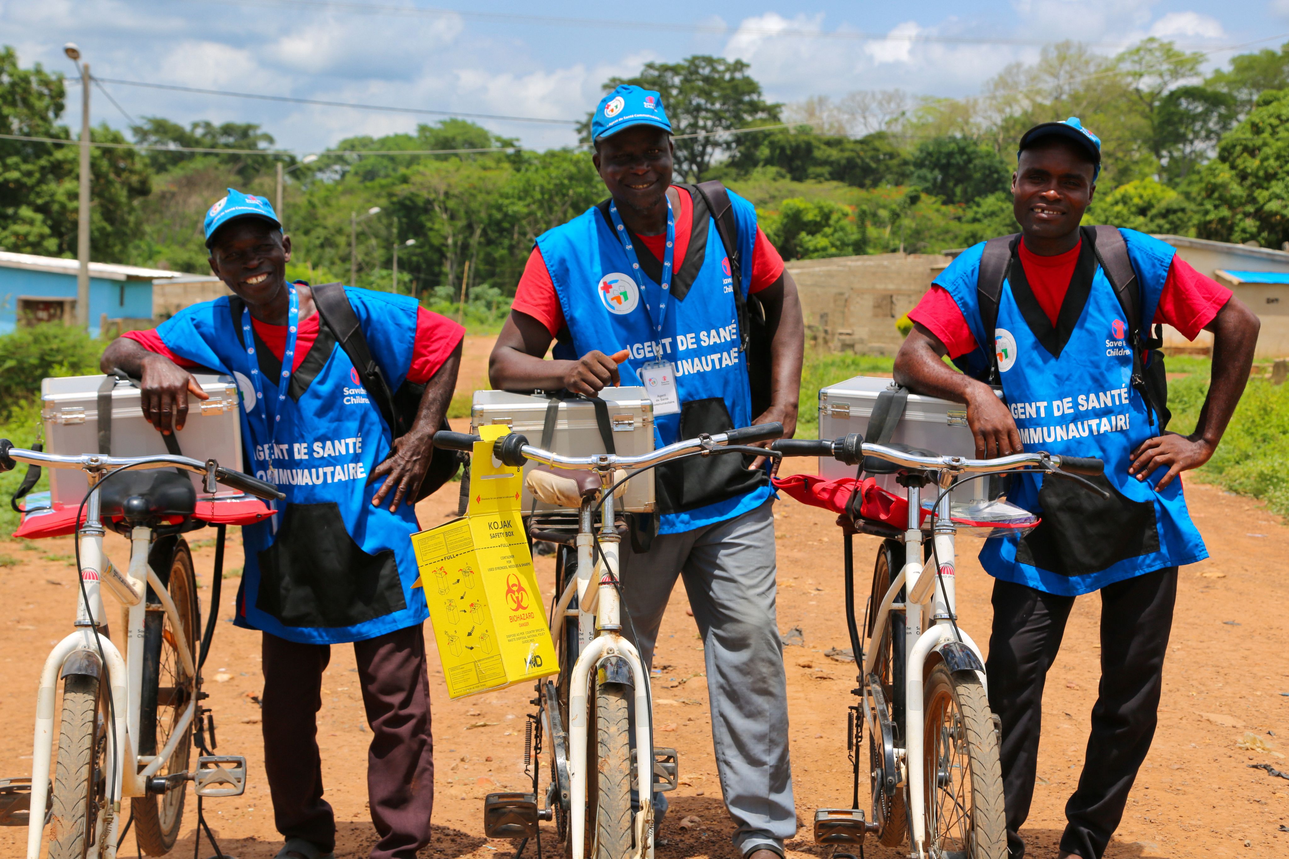 Community Health Workers: Michel Akoto (61), François Kouadio (46), and Fabrice Kouadio (31). Credits: Eve Matheson/ Save the Children.