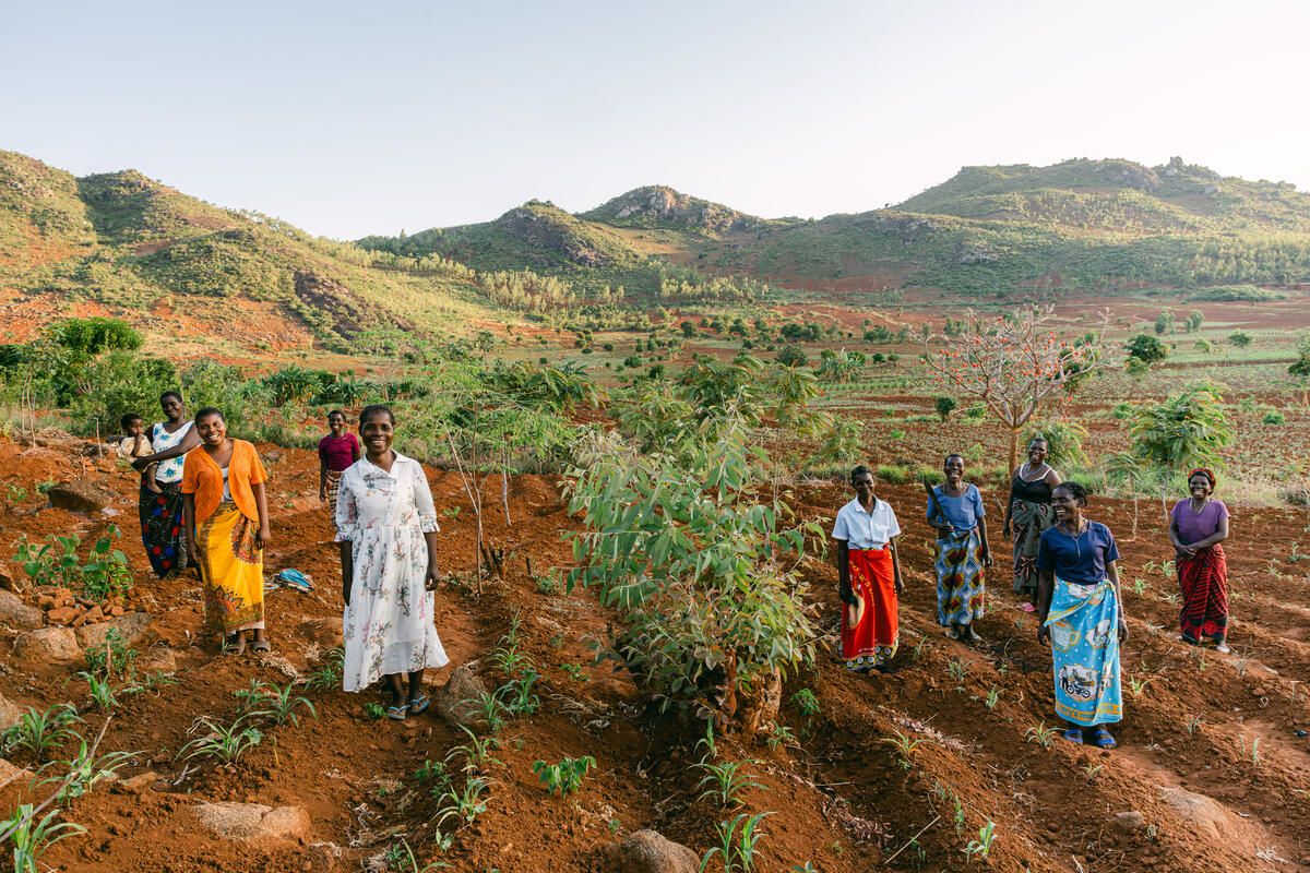 The women are standing in a plot that was given to a nutrition project for families to grow maize for porridge to be cooked and given to children at the nursery, to encourage them to come. As agricultural needs have changed, they’ve converted it to grow trees for firewood.