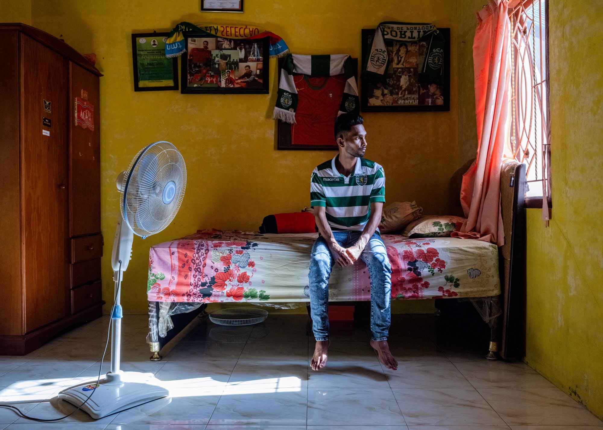 "I was so happy when Martunis allowed us to photograph inside his bedroom. He had the jerseys hanging on the wall, a fan to keep him cool, and his bedroom was very colourful. I asked him to sit on his bed. Soft light came through the window and hit his face and body. He looked outside, lost in thoughts of the memories from 20 years ago, when the tsunami struck Aceh.”