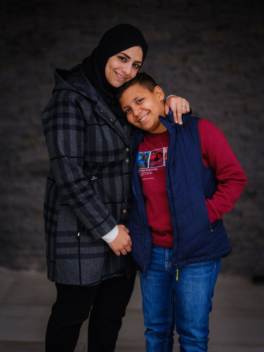 Mariam* hugs her boy, Khaled*, near Save the Children’s safe space in Cairo. Photographer: Misan Harriman. @misanharriman