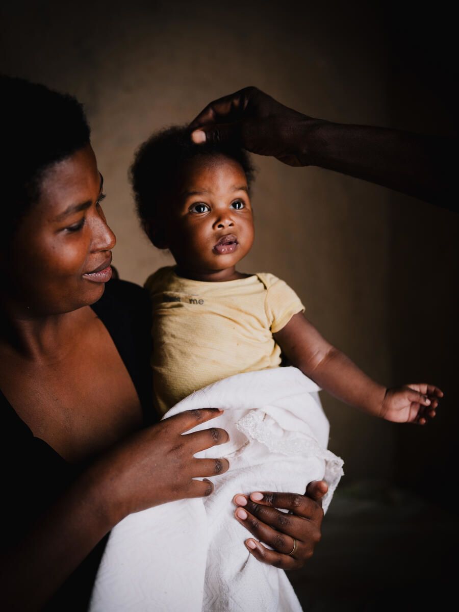 Véronique* proudly holds her six-month-old baby, Franck,* while Franck’s dad plays with his hair. Photographer: Hugh Kinsella Cunningham @hughkinsellacunningham