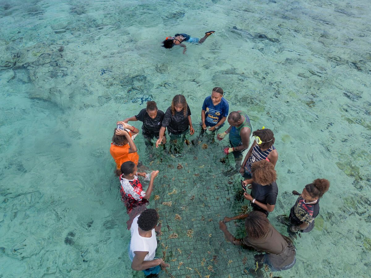 Margaret, 15, and her classmates plant a coral reef surrounding their island in Torba Province, Vanuatu. Photographer: Conor Ashleigh. @conorashleigh