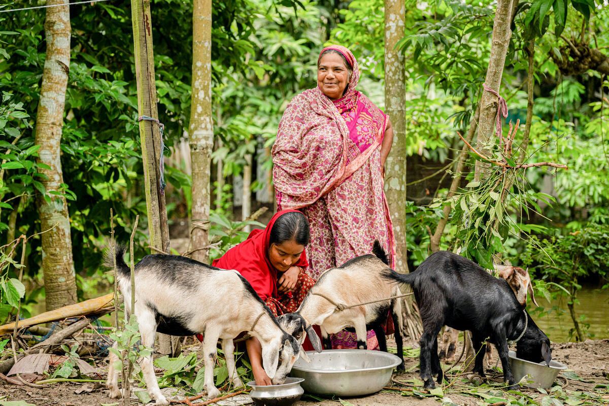 Amina* and her mum, Bulu*, feed their goats at home in Barishal, Bangladesh. Photographer Shefali Rafiq. @shefalirafiqbhat