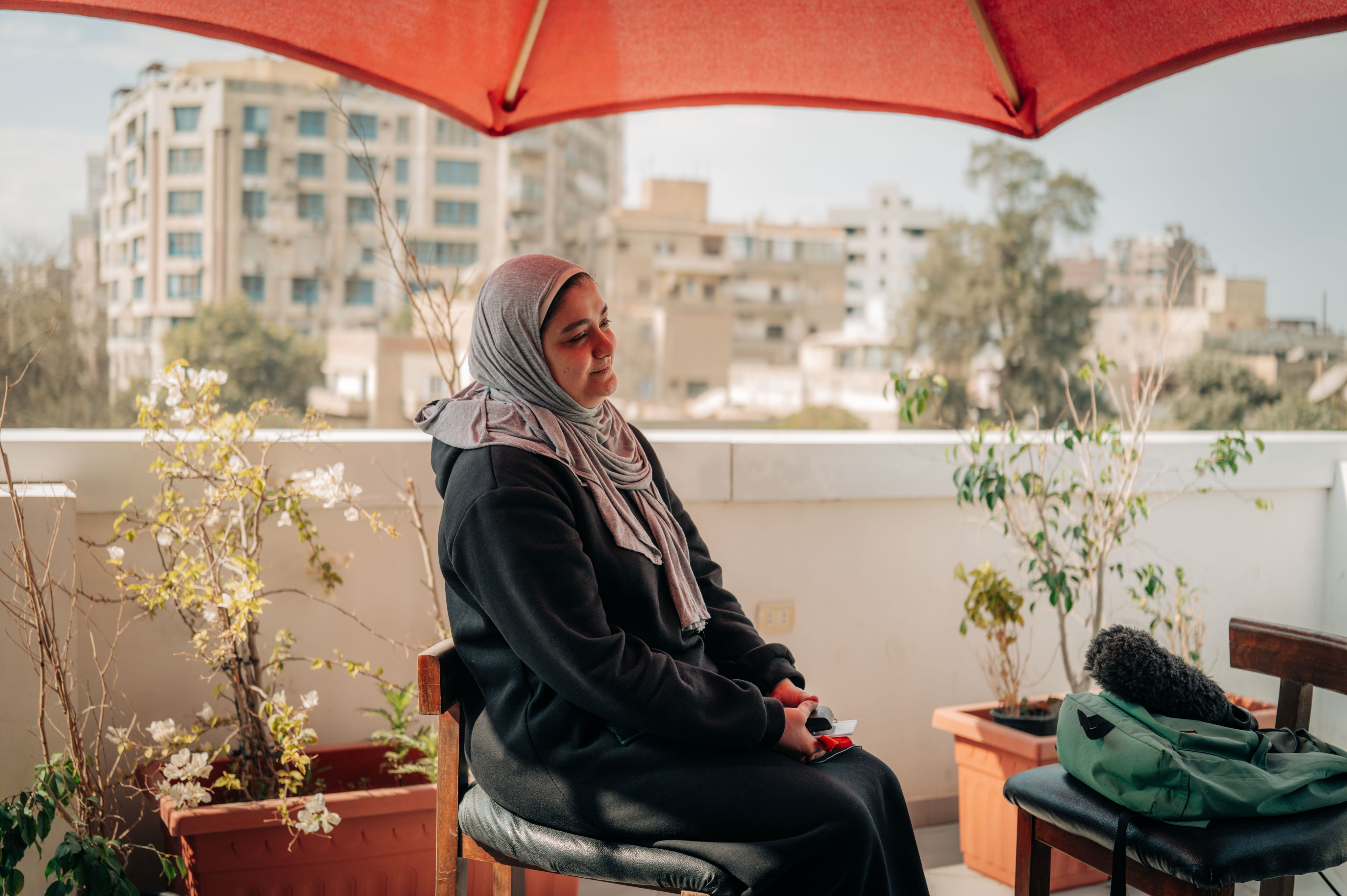 36-year-old Mayar* mother of Adam* has five children aged between 7 and 16. She shares her experience of seeking refuge in Cairo whilst husband remains in Gaza due to injury. Recalling the anxiety she faced living amid the threat of bombing, she says that one year of war felt like a lifetime. “Life was on hold there” she says. In Gaza she would constantly worry that if she ever had to leave her children to get food, she couldn’t be sure they would be alive when she got back.